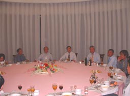 | 高麗ホテル(コリョ・ホテル)内で宴会⇒ 中国・香港から来ている投資家たちとも会食。 北京から平壌に入るときの飛行機でも思ったが、意外にも、かなり多くの国の人たちが行き来しているようだ。 |