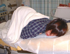 | この後身体を上向きにし、病院到着後 50分ほどして、無事男の子を出産。 妻よ!よく頑張った!(ToT) 出産としてはとても早い方だそうです。 右は、口の中の羊水を抜いてもらっているところ。 ちなみに看護婦さんは励ますとき、 「大きなう○ちをするみたいに力んで!」と…。 なんかある意味 気持ち良さそう…(^^;。 |