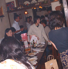 | 2004年11月27日(土)夜の例会(忘年会)風景⇒ モロッコ料理レストラン『カサブランカ』にて開催 参加者27名(男女半々ぐらい) (名古屋市東区泉1-9-14 高岳レジデンス1F TEL:052-953-7774) |