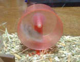 ![]() タッタッタ… 野生のハムスターはこんな小さい体で毎日 1キロも歩くそう。だから回し車は必需品です。 |